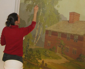 Blackburn Conservation LLC has long experience with fine art and mural restoration, conservation and cleaning. We perform the full spectrum of fine art and mural conservation, including inspections and finish analysis. Only after extensive finish analysis do we attempt cleaning or treatment of an original surface. If a protective or remedial coating is being considered, we first evaluate the effect of the coating on the long term stability and future conservation of the object or surface. We can do in-painting for works on canvass, ceilings and walls.