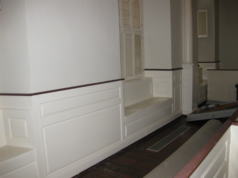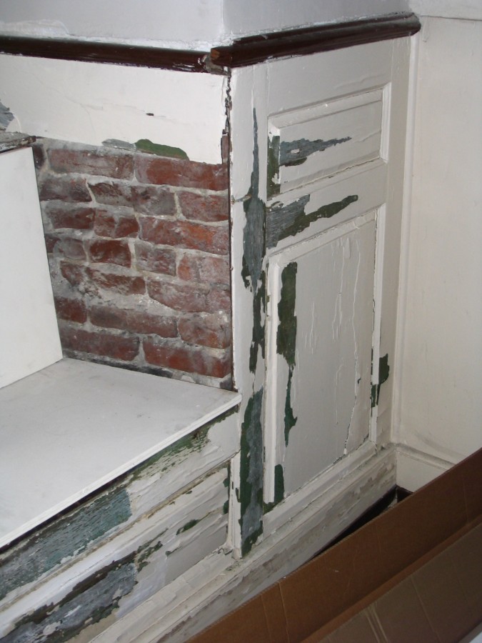 Grade changes made to an adjoining T station entrance had diverted water against the exterior wall of the Church. This saturated the brick and mortar and subsequently the wood paneling and bench seating against the wall. The result was peeling paint and rotting of the bench sills, which led to separation of panels from their frames and other types of damage. Conservation of these historic panels was also complicated by the fact that they had repaired several times and were made up of bits and pieces of panels from other locations. While the effected panels were probably not original, some may have come from the reconstruction of the church interior after its destruction by the British during the occupation of Boston during 1775-6.