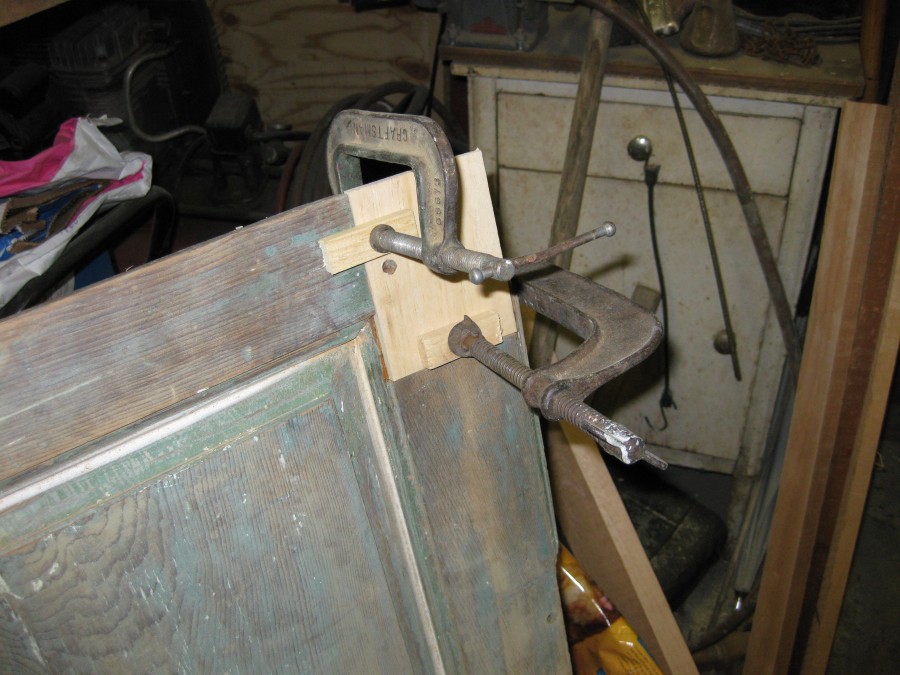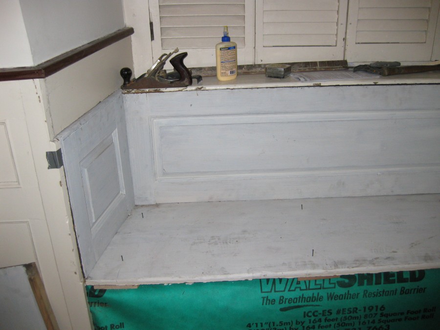 The specifications did not call for the use of epoxies, so all repairs were restored using "dutchmen" type repairs applied to preserve and strengthen the surviving panels. Once these repairs were completed the sections were transported to the Meetinghouse for installation and painting.
